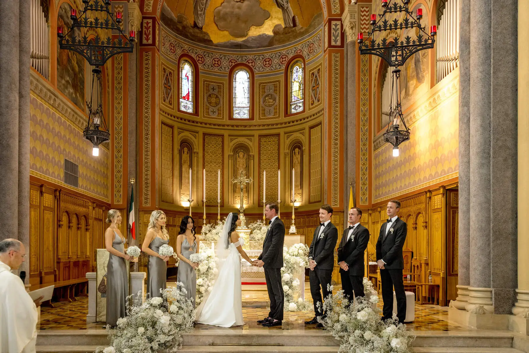 Stephanie and Matthew’s touching and elegant ceremony took place in a beautiful, quaint church in Cernobbio, Chiesa Prepositurale del Santissimo Redentore. Celebrated by their family priest, Father Hurley, and accompanied by beautiful violinists and Matt’s sister-in-law Natalie, a trained opera singer, the ceremony was truly memorable. “We were extremely lucky to get married in a Catholic Church in Cernobbio,” said the couple.