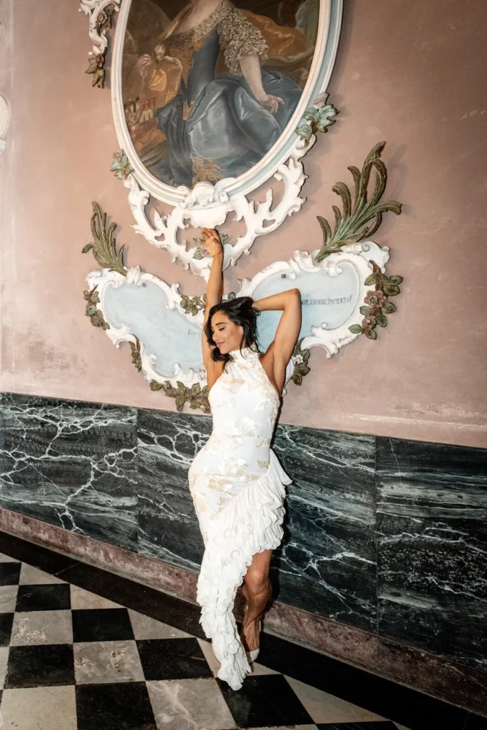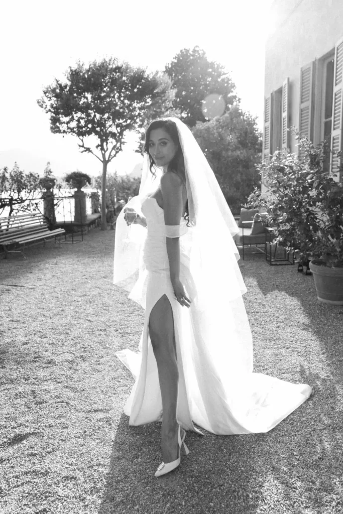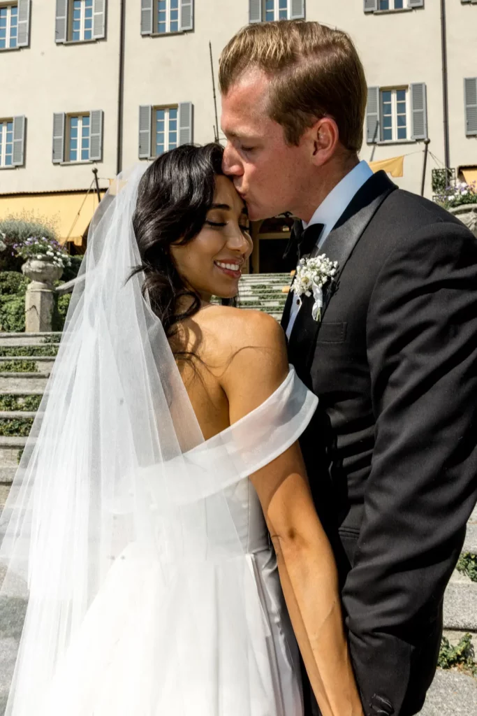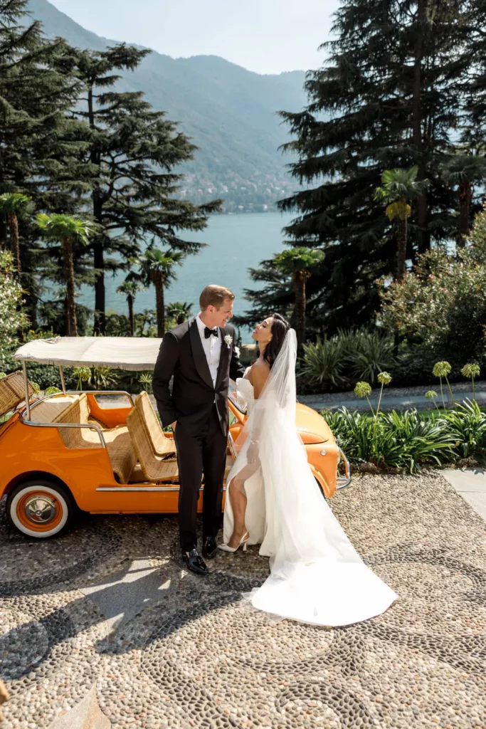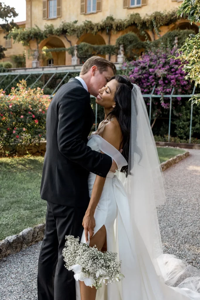 The couple’s first look took place at Passalacqua, a favorite hotel where they stayed during the wedding. The setting was beautiful and felt like a fairytale, capturing the essence of their love story. This intimate moment was beautifully captured by their photographer, Elisabetta Lilly Red.