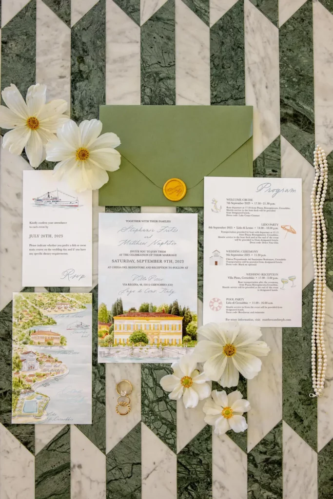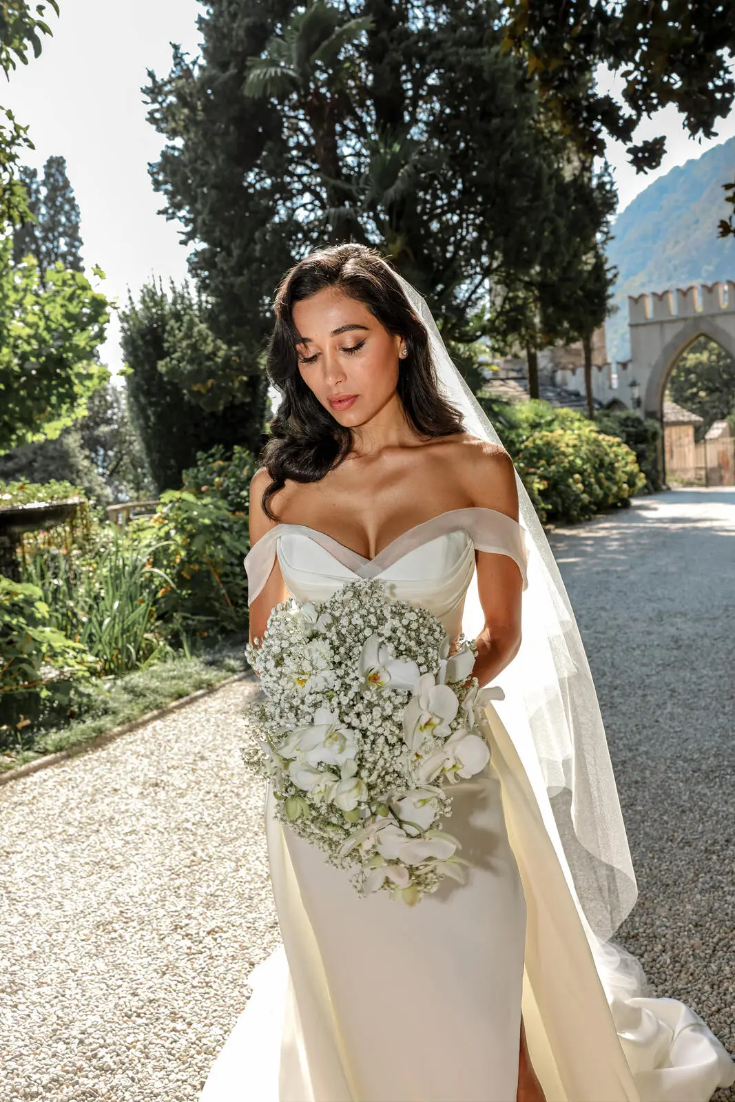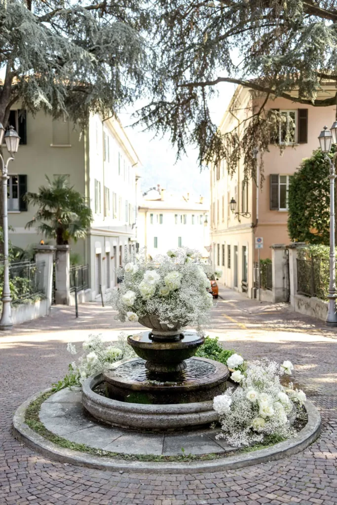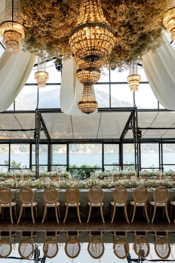The main wedding event took place at the historic Villa Pizzo, a venue that perfectly fit the couple’s vision of classic old Italy. The villa, located right on the lake, offered beautiful outdoor and indoor spaces, creating an elegant and romantic atmosphere for the celebration.