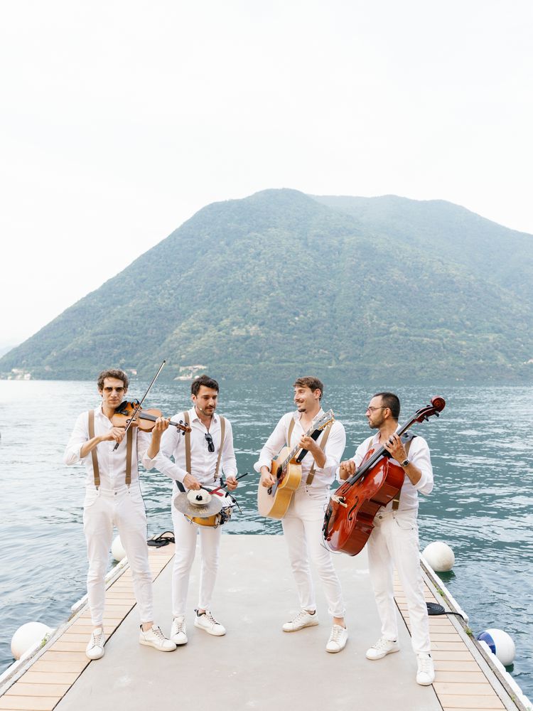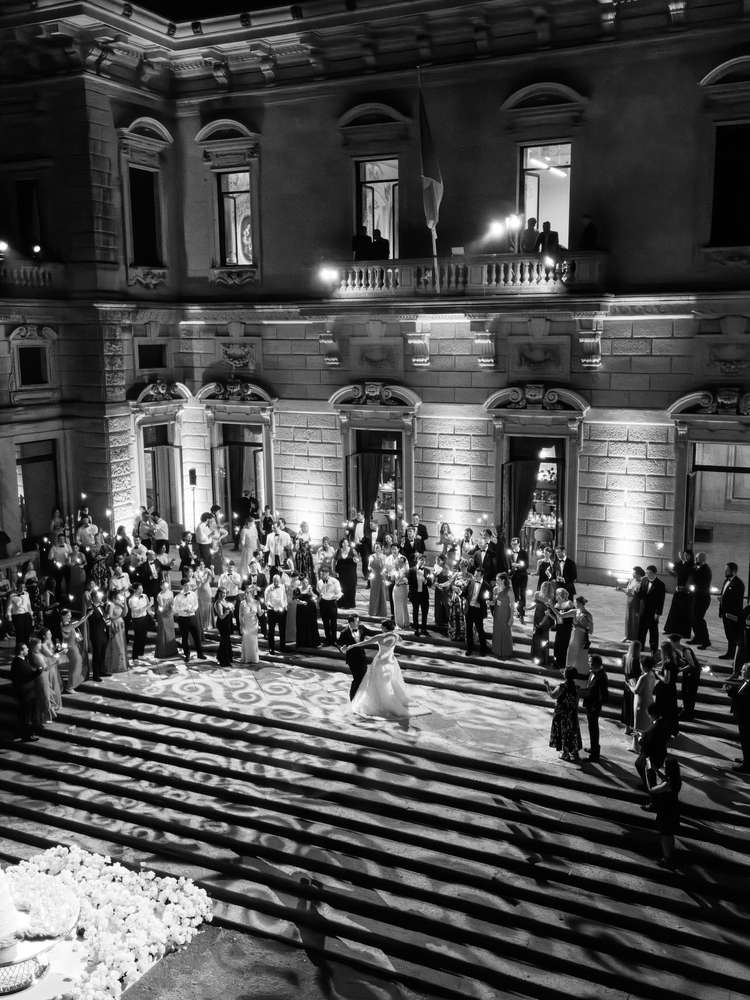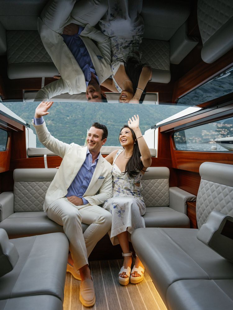 Before the light show began, the newlyweds shared their first dance to “Even the Nights Are Better” by Air Supply; as they cut into their five-tier confection, with vanilla cake, chantilly cream frosting, and strawberry filling, the night sky exploded into color. “One of Greg’s nonnegotiables for the wedding was that we had to have fireworks, even though I would say we’re not the biggest fireworks people in the world (they’re loud and the shows usually drag on),” says the bride, who was ambivalent about the decision ahead of the big day. That all changed as she watched Lake Como come to life. “Words can’t do it justice. It felt so magical to be on the shores of the lake watching this beautiful show on a perfect night. During the show, I leaned over and whispered to Greg, ‘You were right—this is the best,’ which resulted in a deep belly laugh from him.”