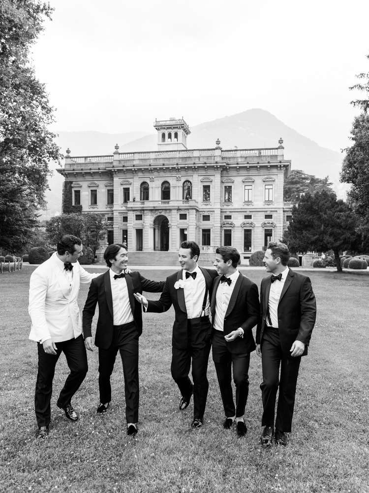 Both Vivian and Greg—who wore a bespoke tuxedo from Huntsman & Sonswith Christian Louboutin shoes, a Tom Ford bow tie, and monogrammed cufflinks from Tiffany & Co.—have participated in wedding parties and know the additional stress and financial burden that comes along with them. “Since we were already asking our friends and family to travel to Italy for us, we wanted to ensure things were as low maintenance for all of our guests as possible,” she says. “For that reason, we opted to not have a wedding party so everybody could focus on enjoying themselves to the fullest.”