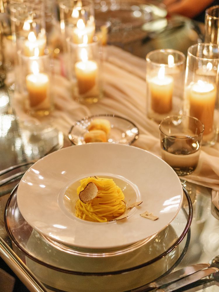 Following a first course of tagliolini fresh pasta with black truffle (truffles were shaved at the tableside) and toma piemontese cheese, guests enjoyed their choice of fiorentina with crispy potatoes or Mediterranean sea bass with cherry tomatoes and taggiasca olives.