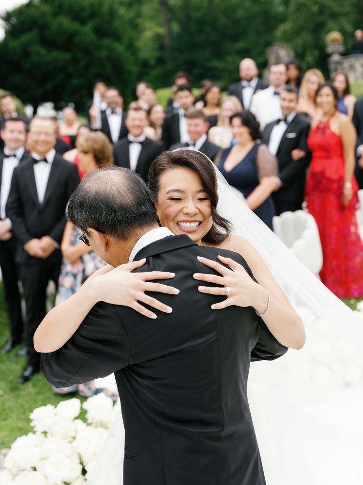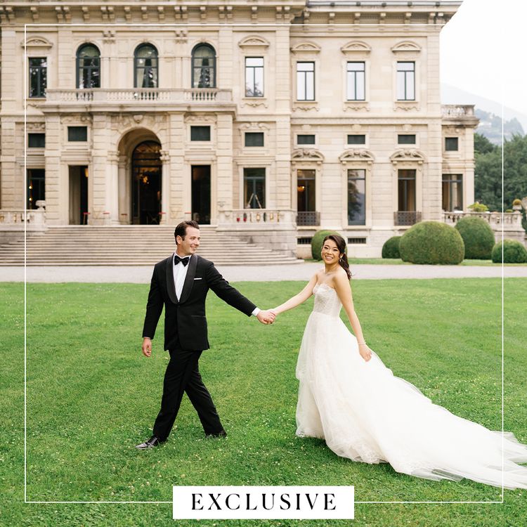 He concocted yet another plan as he prepared to propose to Vivian in July 2022, shortly after the couple locked in a trip to Italy. “He wanted the moment to be private (which is challenging in Lake Como), yet grand, so he decided to rent out Villa Balbianello, one of the lake’s most storied locations, for the proposal,” Vivian tells Brides exclusively. “The challenge then was to figure out how to get me to the villa (which is only accessible by boat), in a dress and with my makeup done, without giving away the surprise.” He managed to pull it off with the decoy story of all decoy stories, fake-out and all. Telling Vivian that they were attending a friend of a friend’s black-tie birthday bash was enough to get her dressed up and on a boat—and upon their arrival, the “groundskeeper” (a.k.a., the proposal planner) greeted them and pretended as though he’d mixed up the date of the party. As a consolation for their troubles, they were offered a tour of the villa—and after a long walk up the gravel pathway, they reached the estate, where Greg got down on one knee and officially proposed.