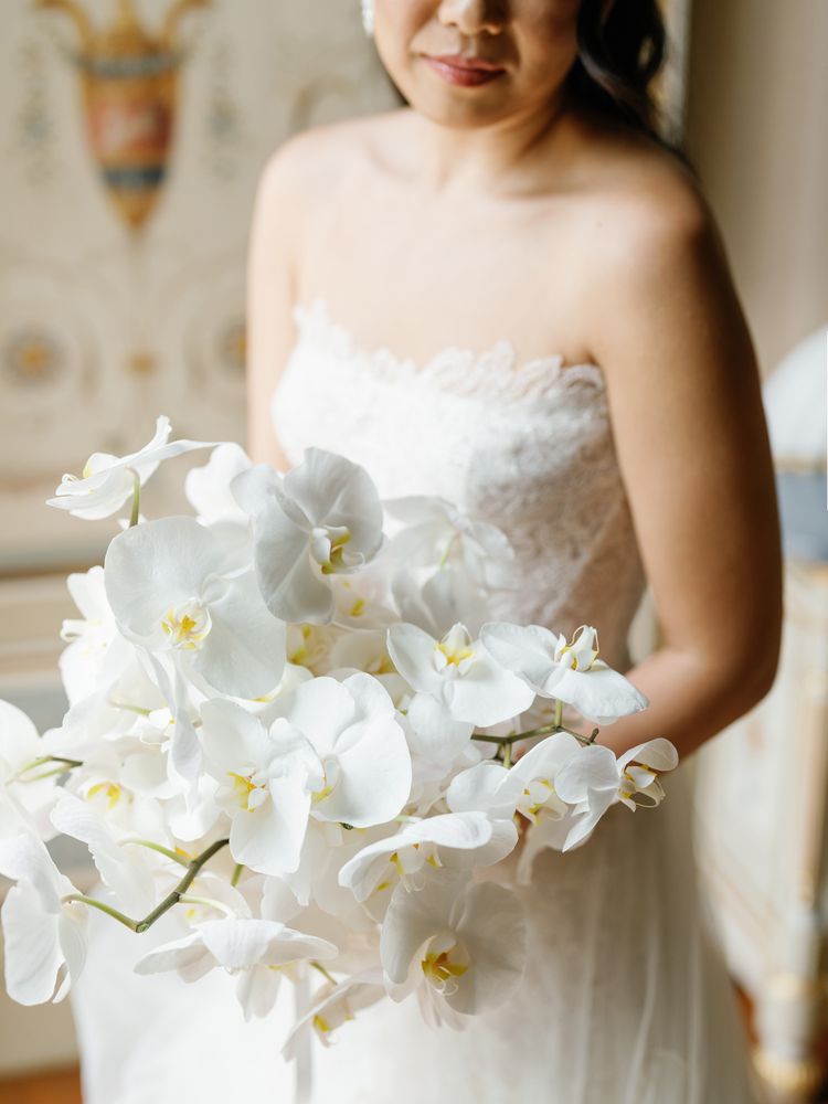 The bride held a simple white orchid bouquet by Riccardo Ciceri for her walk down the aisle.