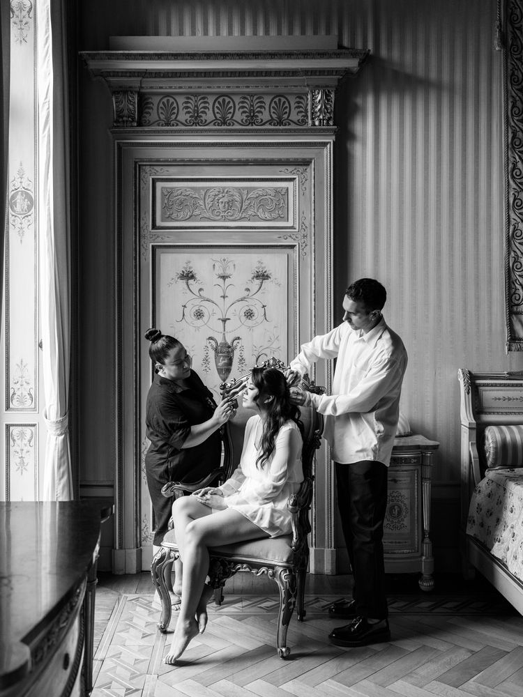 The couple knew right away (literally) that they’d eventually tie the knot in Italy; they actually toured a few venues in the days after their engagement. “Italy has always been a special place for us—the first trip we ever took as a couple was to the Amalfi Coast back in 2017. We love the culture, the food, the beautiful scenery, the people—everything,” says the bride. Lake Como was always the goal: “It’s simply the most magical place we’ve ever been. When we first visited in 2022, I distinctly remember walking out on the terrace of our hotel. The weather was perfect, the lake was still, and the mountains just seemed to spring up from the shore with a slight haze lingering over the tops. It felt like I had been dropped into a fairy tale.”