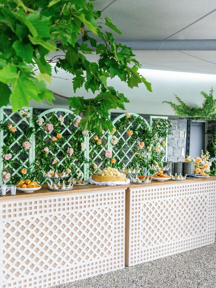 Attendees heeded the pair’s “Italian chic” pastel dress code, which played into the event’s palette and décor landscape. “We didn’t want it to feel like a restaurant. Instead, we wanted our guests to feel like they had arrived at an Italian nonna’s home and garden for dinner,” shares Vivian.